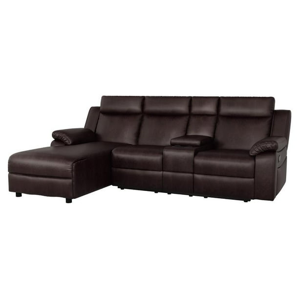 Hand selected bonded leather on outside areas. Madison 3 seat sofa with chaise in soleil luggage brown A reclining sectional to love? Whether you are looking for a small sectional or a large one, make sure that you pick one out that offers a chaise. Elevate your lounging to the next level with this.